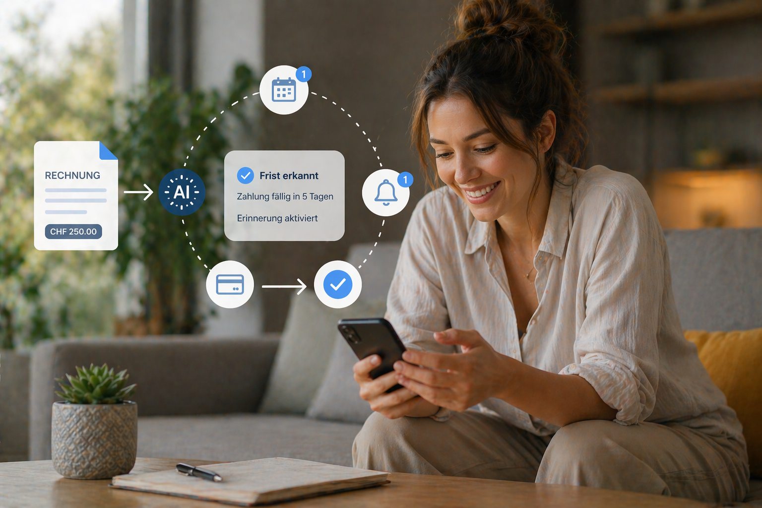 Wir lassen Sie nicht allein. Unser System erkennt Rechnungen und Behördenfristen automatisch und erinnert Sie rechtzeitig.