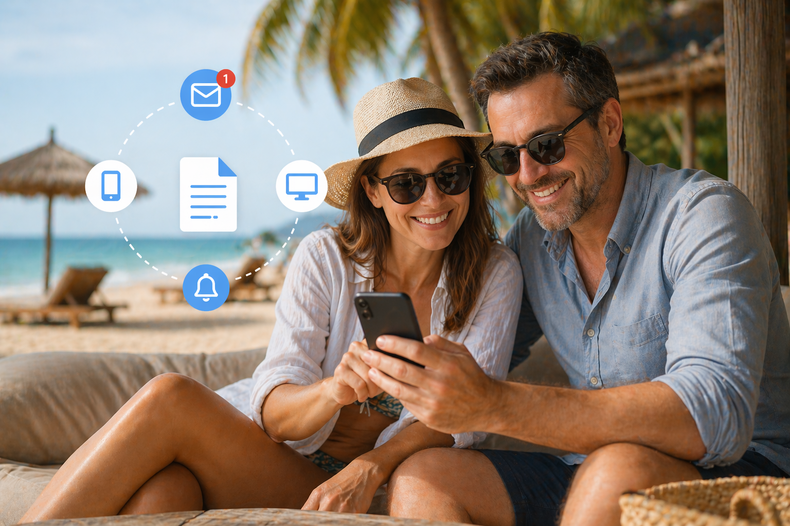 Egal ob am Strand oder im Meeting: Sobald ein Brief eintrifft, haben Sie ihn auf dem Schirm. Ihr digitales Postfach ist intuitiv und sicher.